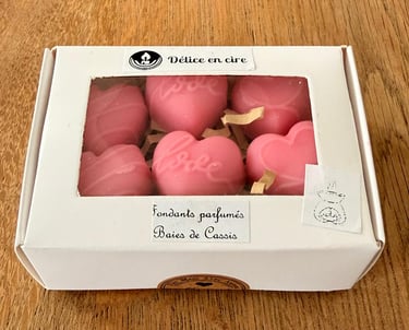 Les fondants parfumés sont proposés en box de 6 fondants de 30 g, conçus en cire de soja et enrichis d’huile de coco pour offrir une expérience sensorielle unique, alliant plaisir et sécurité. Grâce à leur composition naturelle, ces fondants fondent facilement et diffusent des fragrances envoûtantes sans émettre de substances nocives classées CMR.